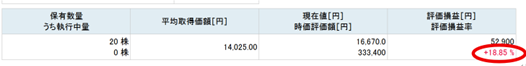 6ヶ月リターン18.85%なので、